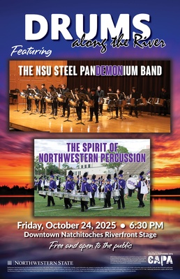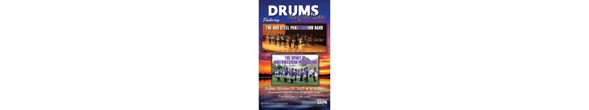 The Sixth Annual Drums Along the River concert will be presented on Friday, Oct. 24 at 6:30 p.m. at the downtown riverbank stage in Natchitoches. Admission is free and open to the public.
