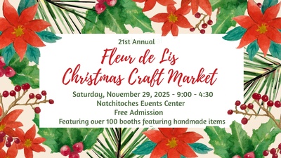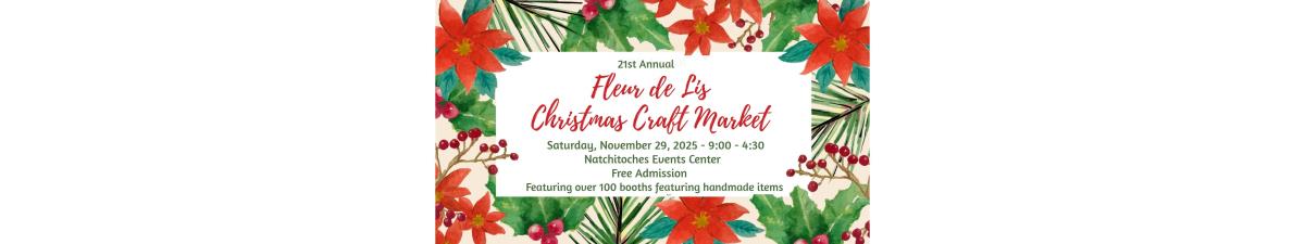 Applications are now available for the 2025 Fleur de Lis Christmas Craft Market to be held on Saturday, November 29 in Natchitoches, Louisiana. This is a one day, indoor, handmade only event, now in its 21st year.
