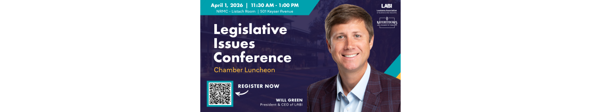 Be a part of our Legislative Issues Luncheon hosted by the Natchitoches Area Chamber of Commerce. We’re proud to welcome Will Green, President and CEO of Louisiana Association of Business and Industry (LABI), as our keynote speaker as part of LABI’s 2026 Legislative Issues Conference tour.